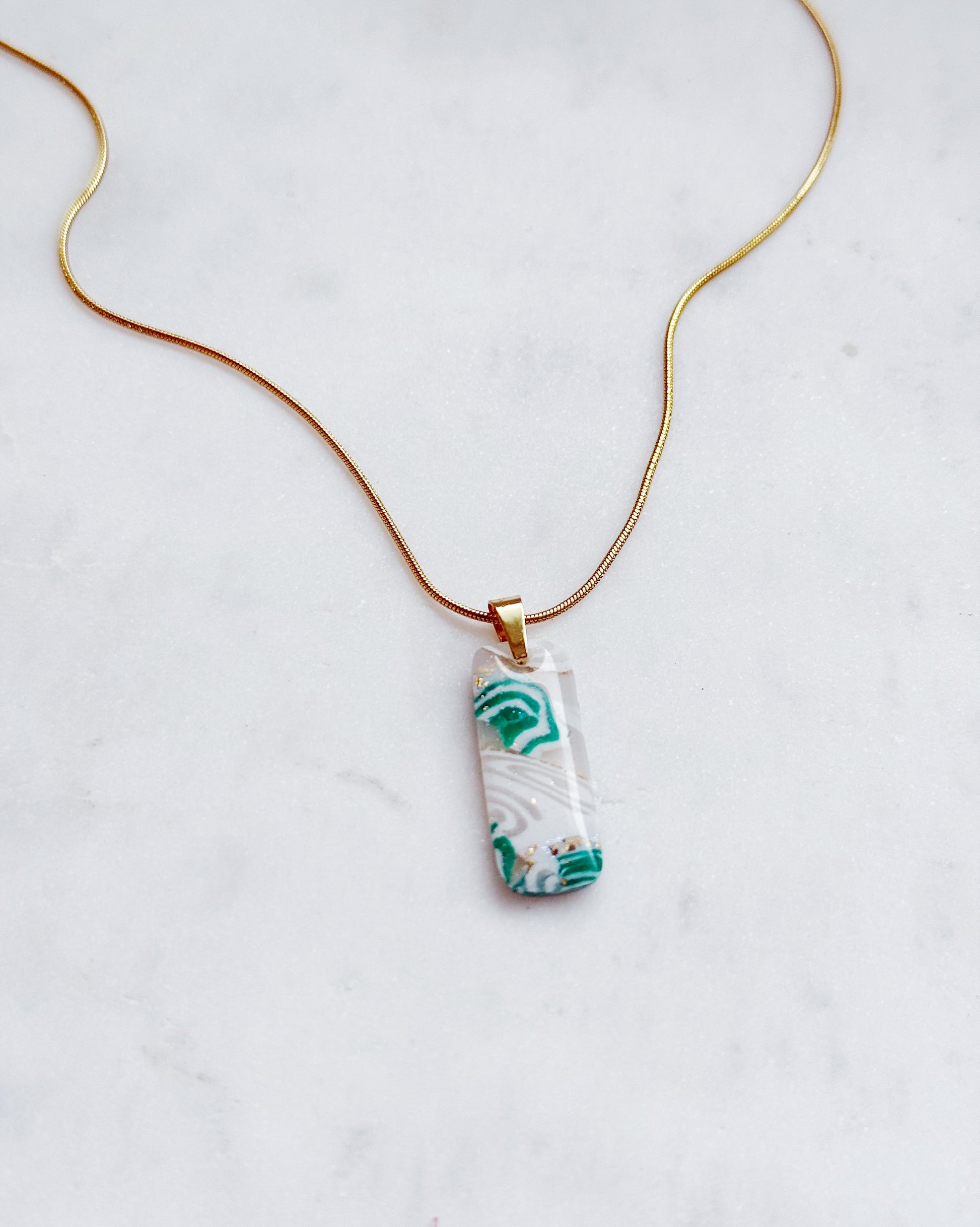 Korusta löytyvä riipusosa on valmistettu polymeerimassasta, joka on pinnoitettu hartsilla, luoden kiiltävän sekä kestävän pinnan riipukselle.