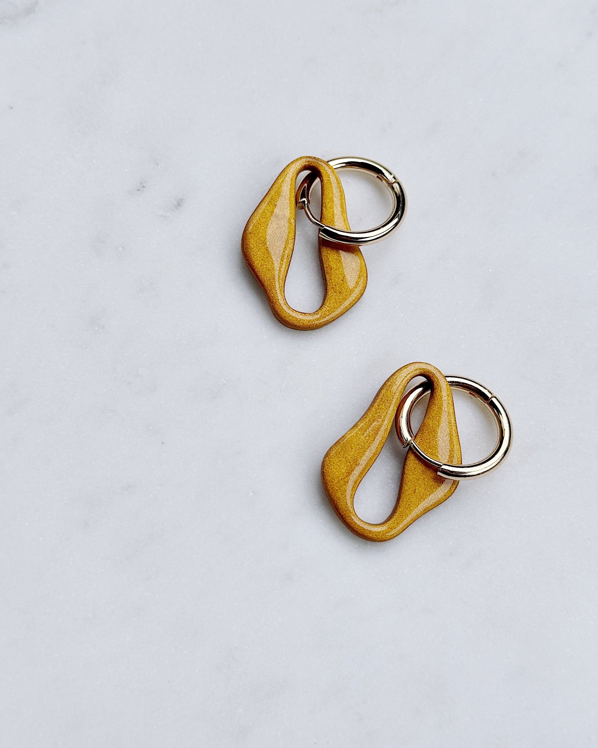 Symi on näyttävän abstrakti, rengaskiinnityksellinen korvakorumalli.